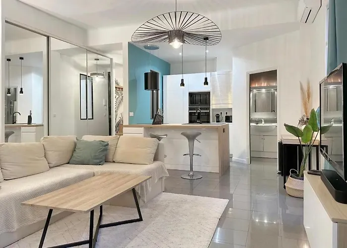 The property features a fully equipped kitchen. Nice Cote d'Azur airport is at a 20-minute driving distance, and Jean Medecin Pastorelli bus stop is in close proximity to Loft Carre D'Or - Wifi, Climatisation, 4 Personnes Apartment.